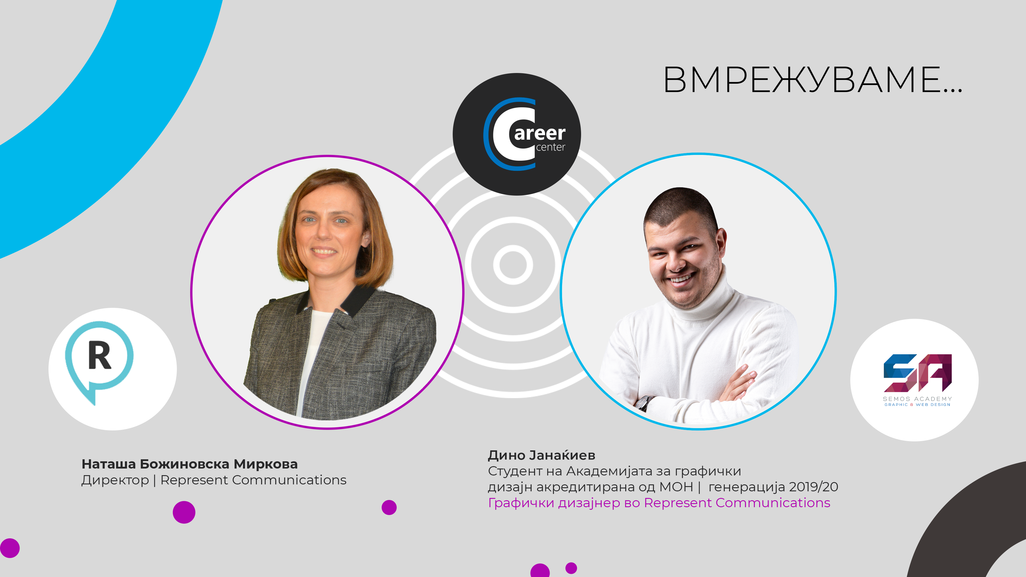 Запознајте го Дино Јанаќиев, студент од Академијата за Графички дизајн, акредитирана од МОН, генерација 2019/20 кој со поддршка на Кариерниот центар на Семос Едукација успеа да се вработи како графички дизајнер во Represent Communications.